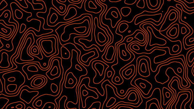 Moving orange waves on a black background. Abstract animated outline contour map. 4k, 60fps video loop. Pro Video