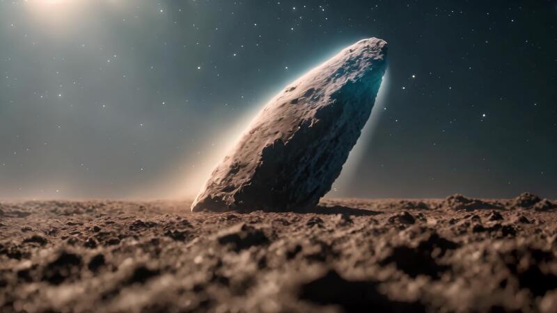 AI generated a massive rock located in the center of an open field, displaying its imposing presence and the surrounding scenery, A rare video glimpse of a comet passing by Earth, AI Generated Free Video