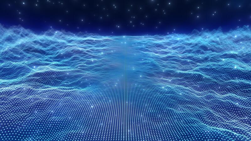 Abstract glowing digital cyberspace of waves, particles and dots moves on a dark blue background. big data visualization, futuristic and technological. 4k 60 fps animation. Pro Video