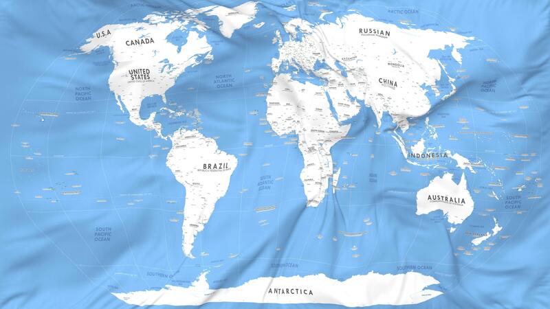World Map with All Countries Name Seamless Looping Background, Looped Cloth Waving Slow Motion, 3D Rendering Free Video