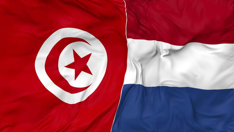 Tunisia and Netherlands Flags Together Seamless Looping Background, Looped Bump Texture Cloth Waving Slow Motion, 3D Rendering Free Video