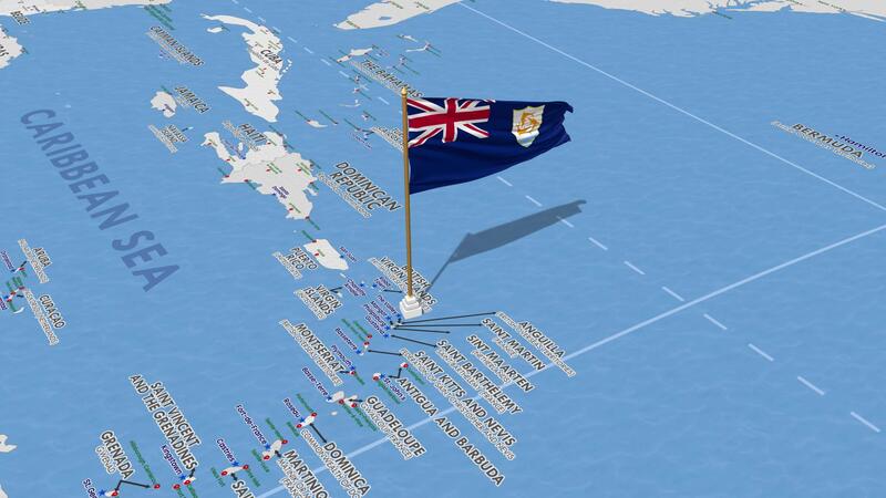 Anguilla Flag Waving with The World Map, Seamless Loop in Wind, 3D Rendering Free Video