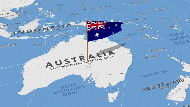 Australia Flag Waving with The World Map, Seamless Loop in Wind, 3D Rendering Free Video