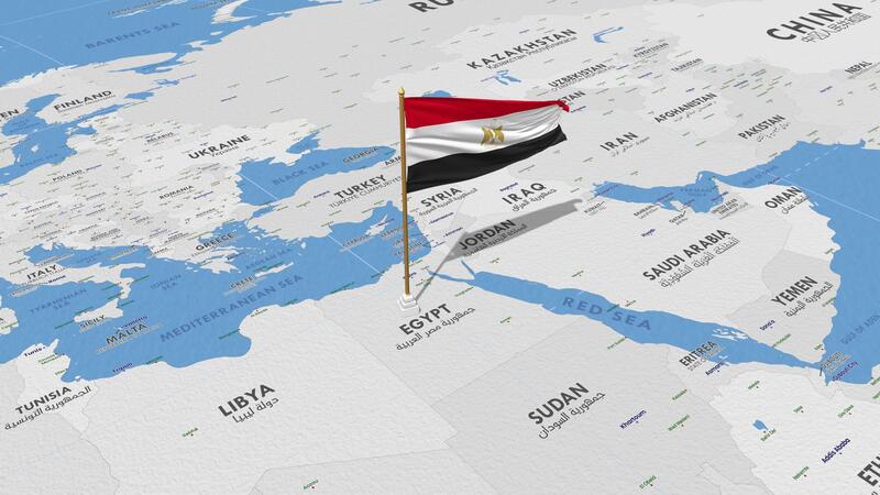 Egypt Flag Waving with The World Map, Seamless Loop in Wind, 3D Rendering Free Video
