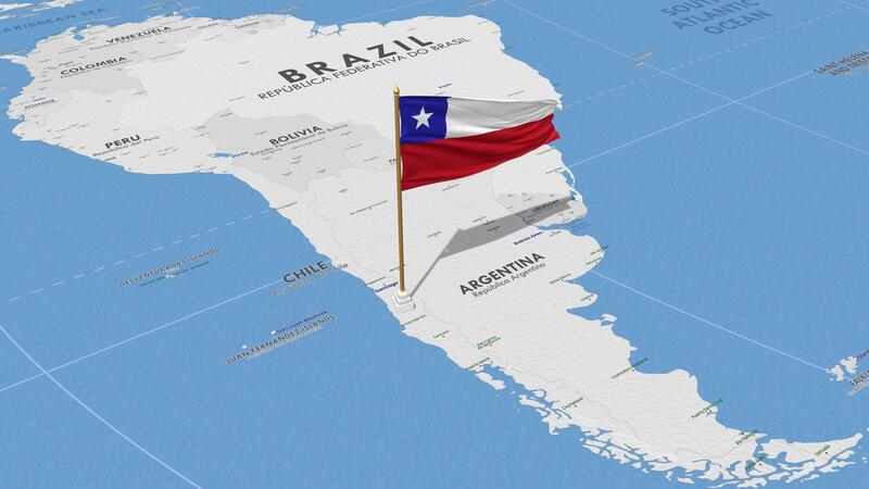 Chile Flag Waving with The World Map, Seamless Loop in Wind, 3D Rendering Free Video