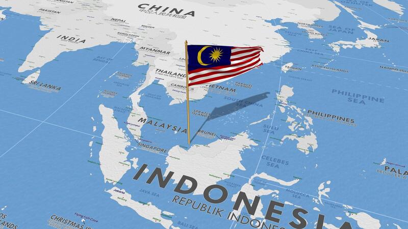 Malaysia Flag Waving with The World Map, Seamless Loop in Wind, 3D Rendering Free Video