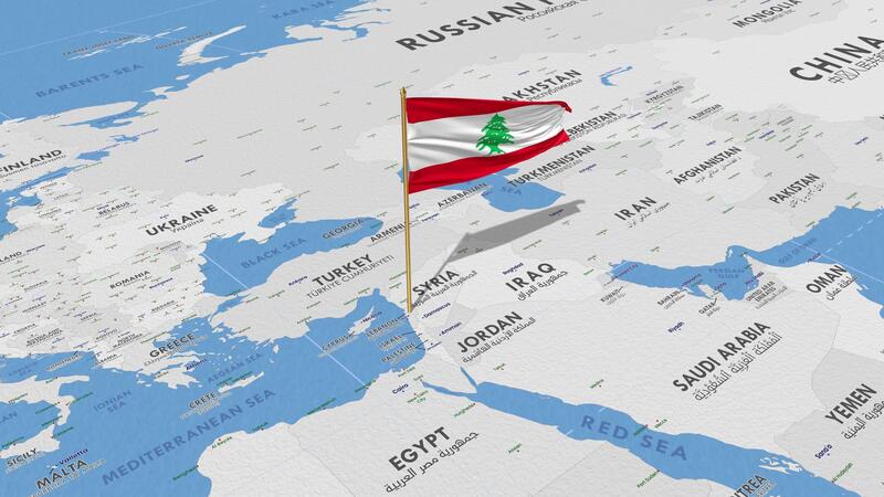 Lebanon Flag Waving with The World Map, Seamless Loop in Wind, 3D Rendering Free Video