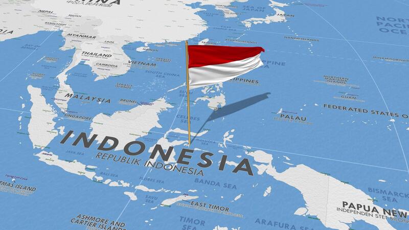 Indonesia Flag Waving with The World Map, Seamless Loop in Wind, 3D Rendering Free Video