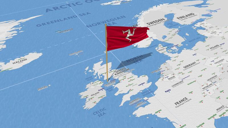 Isle of Man Flag Waving with The World Map, Seamless Loop in Wind, 3D Rendering Free Video