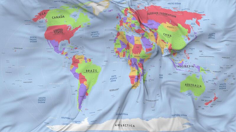 World Map with All Countries Name Seamless Looping Background, Looped Cloth Waving Slow Motion, 3D Rendering Free Video