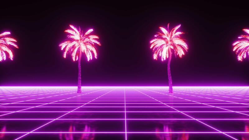 Side Scrolling Neon Palms Synthwave Background Loop Pro Video