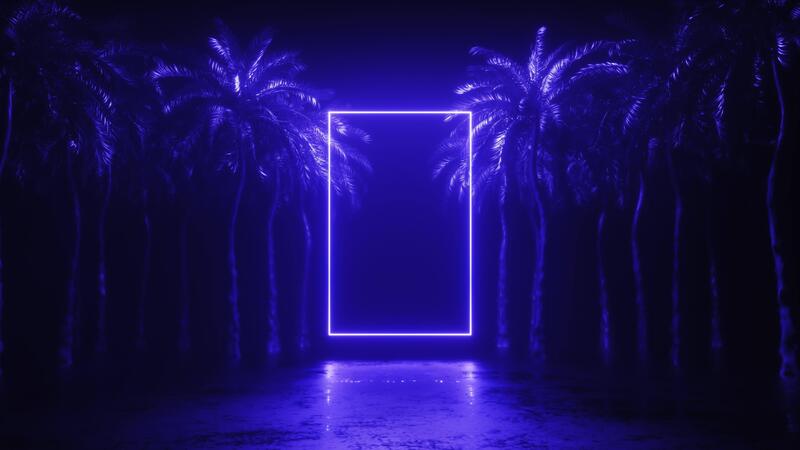 Neon Colorful Frame and Palm Trees Loop Pro Video