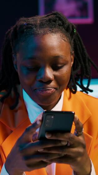 Vertical Video College student doing her homework at laptop and texting on phone, enjoying school break to check social media apps. Girl researching for assignments and using smartphone. Camera A. Pro Video