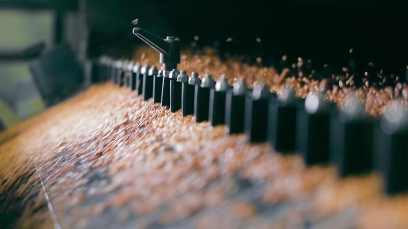 Automated Grain Distribution in Silo, Grains being evenly distributed by mechanical spreader inside a silo. Pro Video