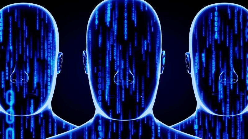 Three Man Faces and Matrix Style Binary Code Pro Video
