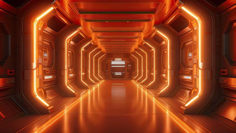 AI generated Futuristic scifi tunnel corridor with glowing lights 3d rendering, 3D rendered illustration of empty illuminated spaceship corridor, AI Generated Free Video