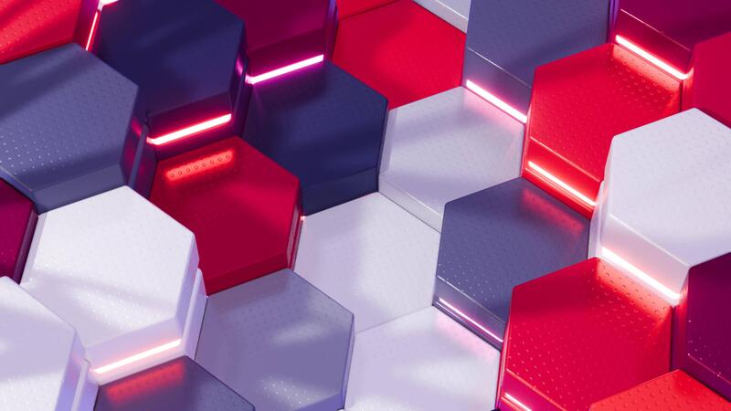 a red, white and blue background with many different colored hexagons loop animation Pro Video