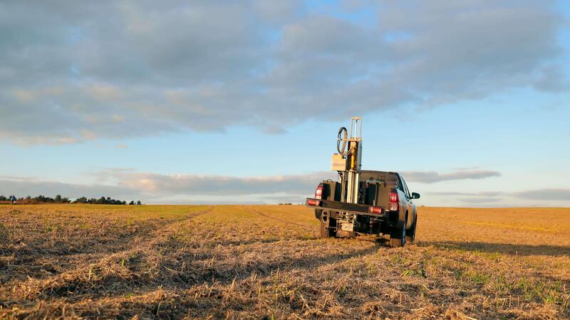 A car that automatically takes soil samples in the field. Soil-centric technology of soil sampling Pro Video