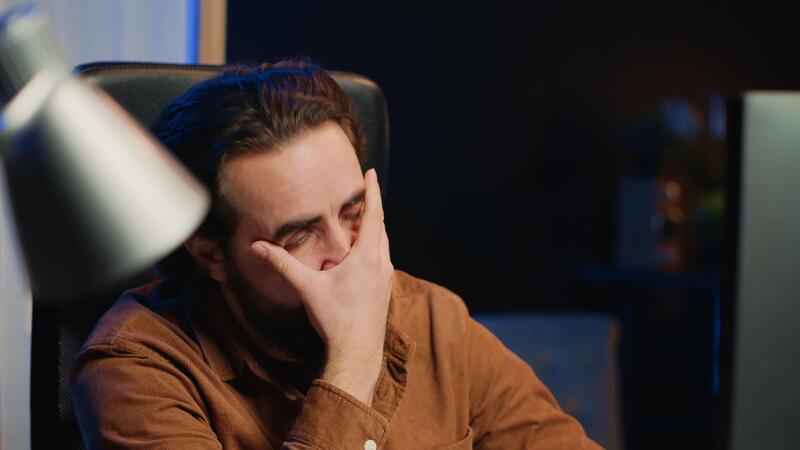 Angry computer scientist fuming after failing to remove all bugs while coding on workstation desktop. Teleworking IT professional smashing desk, irritated by script errors Pro Video