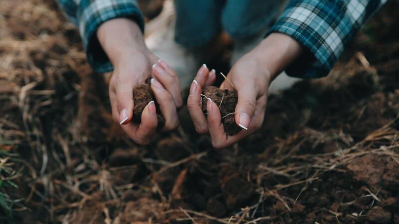 Top view of soil in hands for check the quality of the soil for control soil quality before seed plant. Future agriculture concept. Smart farming, using modern technologies in agriculture Free Video