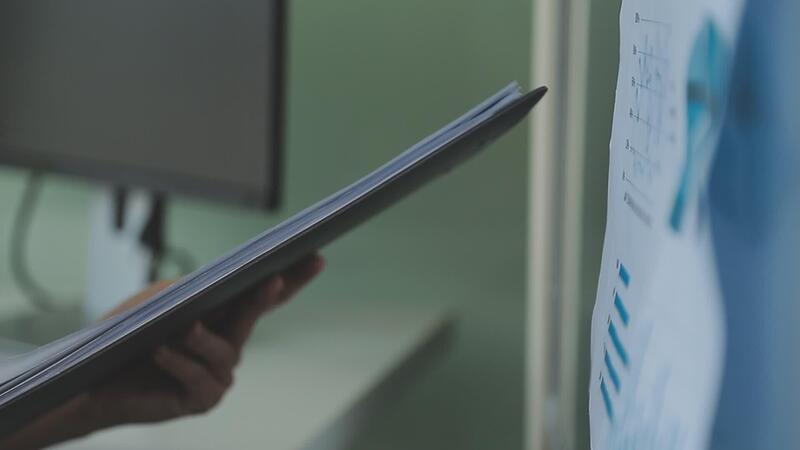 Business team collaboration discussing working analyzing with financial data and marketing growth report graph in team, presentation and brainstorming to strategy planning making profit of company. Pro Video