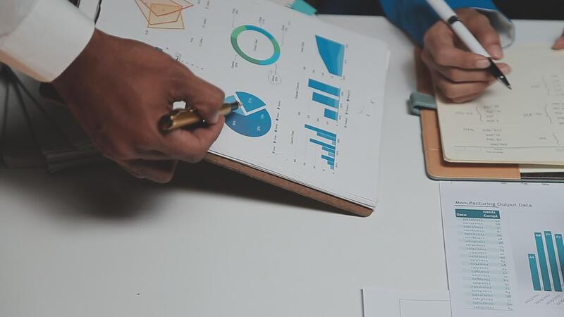Business team collaboration discussing working analyzing with financial data and marketing growth report graph in team, presentation and brainstorming to strategy planning making profit of company. Free Video