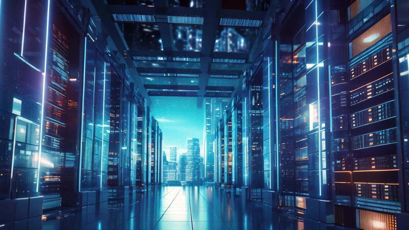 AI generated 3D rendering of server room data center with bright blue lights, IT Server and modern digital fortress with digital computers, Data center, AI Generated Free Video