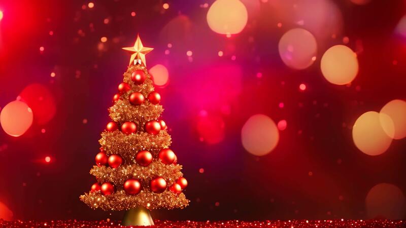 AI generated Christmas tree on red bokeh background. 3D illustration, Christmas Tree With Ornament And Bokeh Lights In Red Background, AI Generated Free Video