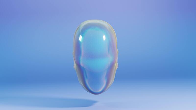 This video features a 3D model of an abstract, colorful intelligence face scanner with a screen that cycles through various glowing colors. The model is intricately designed, showcasing a complex Pro Video