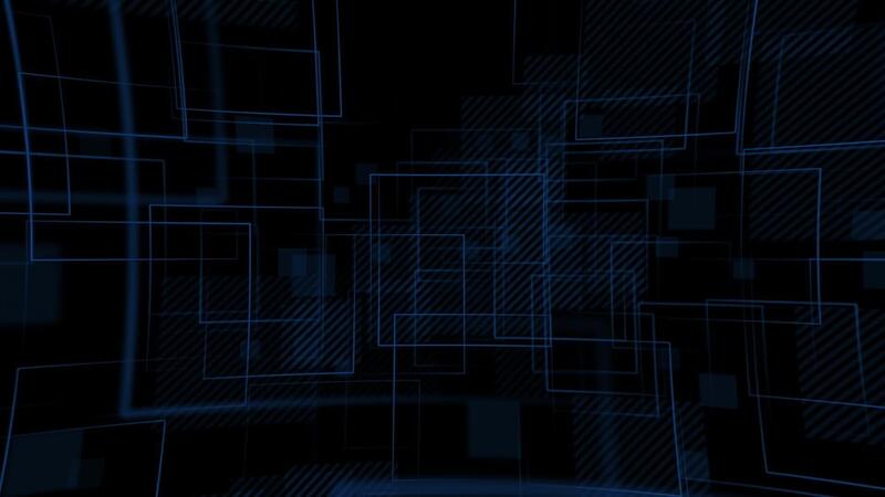 Dark abstract geometric technology background with a repeating minimalist pattern of blue square shapes and dashed lines. Full HD and looping textured tech background. Free Video