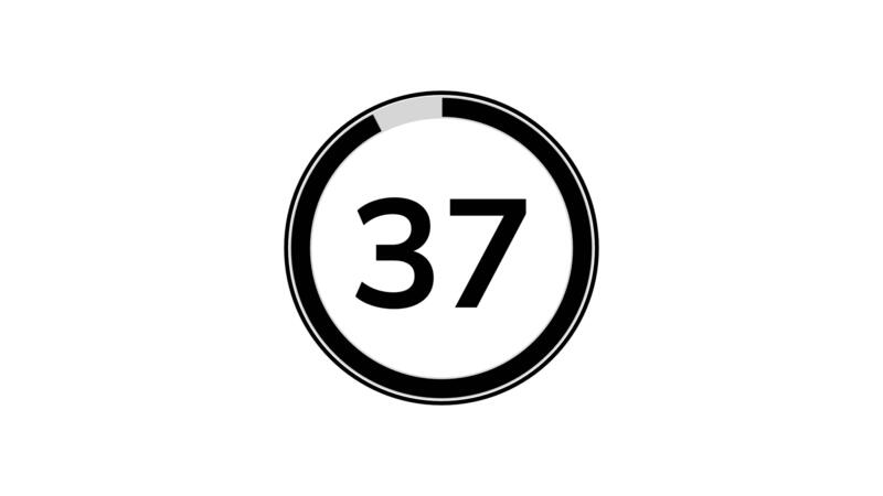 40 seconds countdown timer animation with simple flat modern black circle indicator animation on white background. Pro Video Free Video