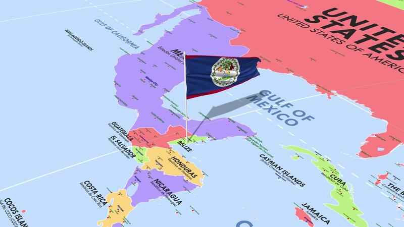 Belize Flag Waving in Wind, World Map Rotating around Flag, Seamless Loop, 3D Rendering Free Video