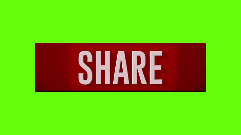 Red button rotating endlessly with the text SUBSCRIBE - SHARE - LIKE. against green background. Loop sequence. 3D animation Free Video
