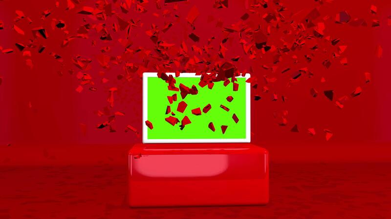 Intro video. Green screen inside a red box exploding against red background. 3D animation Free Video