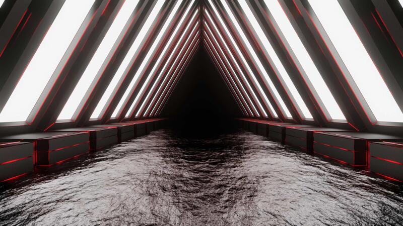 Black and Red Neon Glowing Triangular Arch Tunnel Background VJ Loop Pro Video