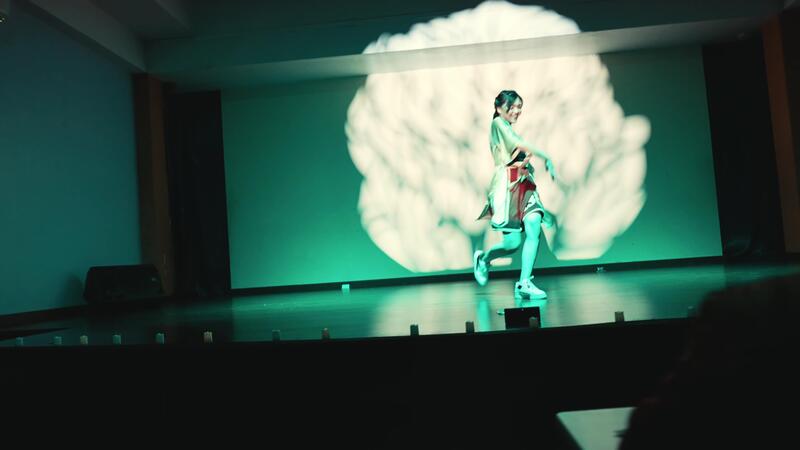 Silhouette of a person against a large projected cloud on a screen, creating an artistic and moody atmosphere. Pro Video