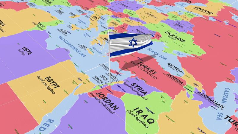 Israel Flag Waving in Wind, World Map Rotating around Flag, Seamless Loop, 3D Rendering Free Video