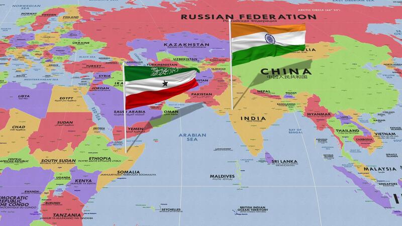 Somaliland and India Flag Waving with The World Map, Seamless Loop in Wind, 3D Rendering Free Video