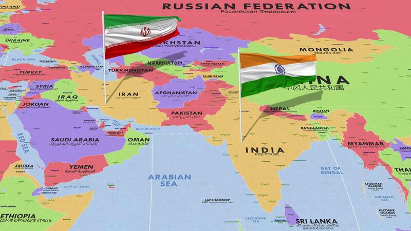 Iran and India Flag Waving with The World Map, Seamless Loop in Wind, 3D Rendering Free Video