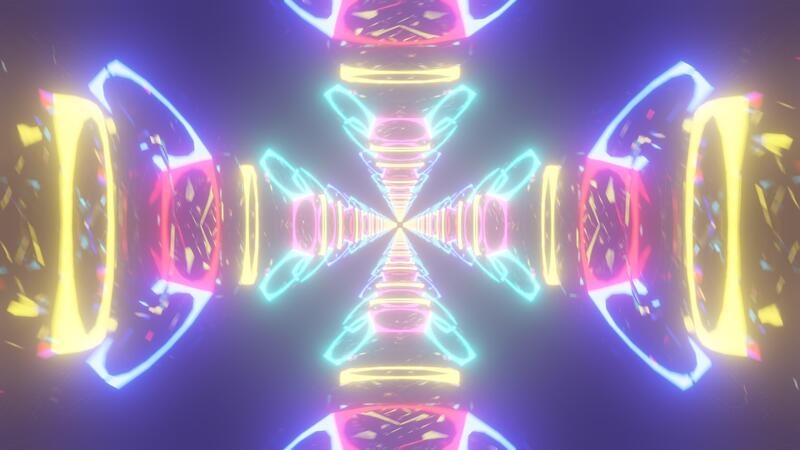 Motion graphic 4K flying into digital technologic strobe Neon tunnel. Futuristic glow sci-fi VJ Loop. 3d render. Pro Video