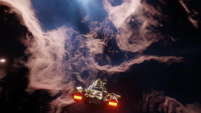 Deep Space Exploration concept. Spaceship flying through nebula or galaxy clouds. 3d render. Pro Video