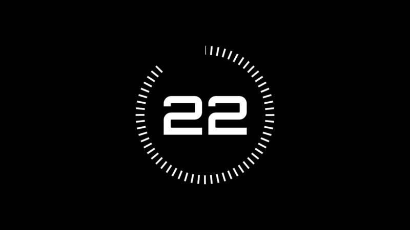 25 seconds countdown timer animation from 25 to 0 seconds. Modern white timer on black background Free Video