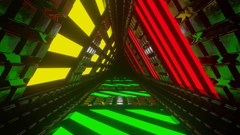 Red and Green and Yellow Rotating Glowing Screen Triangular Tunnel Background VJ Loop Pro Video