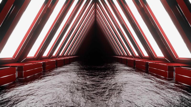 Red and Silver Neon Glowing Triangular Arch Tunnel Background VJ Loop Pro Video