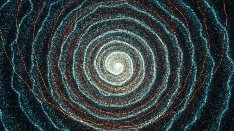 Multicolored and multilevel hypnotizing spiral particles - particles in spiraling motion in fluid space - 4K Video Pro Video
