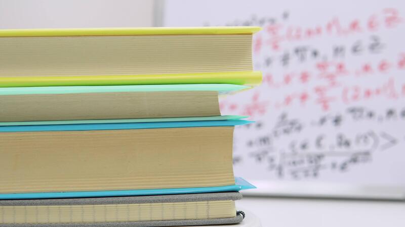 Textbooks stacked in a column rotate around its axis on a stand. Education concept Free Video