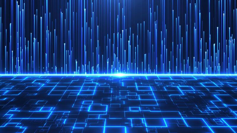Abstract futuristic cyber world scene, sci-fi mesh, glowing technology surface, neon night scene, digital science background with bright neon lines going up. 4K animation, seamless loop. Pro Video