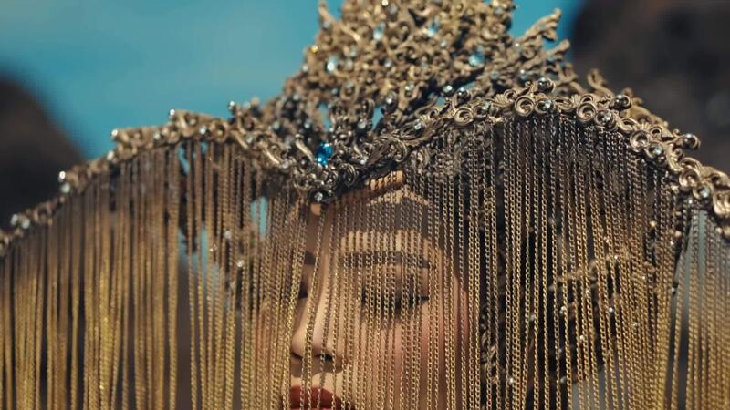 Abstract close-up of a textured surface with draped beaded chains creating a wave-like pattern over a blurred background. Pro Video
