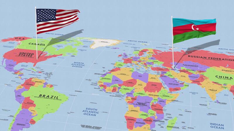 Azerbaijan and United States Flag Waving with The World Map, Seamless Loop in Wind, 3D Rendering Free Video