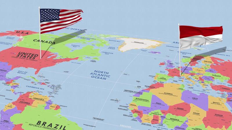 Monaco and United States Flag Waving with The World Map, Seamless Loop in Wind, 3D Rendering Free Video